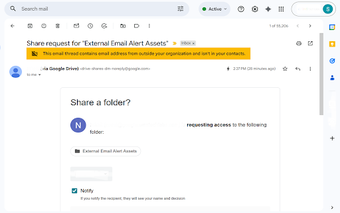 Gmail External Sender Alert to darmowe rozszerzenie dla przeglądarki Chrome, które pomaga użytkownikom uniknąć przypadkowego wysyłania poufnych informacji do zewnętrznych adresatów. Działa jako zabezpieczenie, które automatycznie skanuje pola To, Cc i Bcc podczas pisania wiadomości e-mail. W przypadku wykrycia adresu e-mail spoza domeny organizacji, wyświetla wyraźny alert, zachęcając do ponownego sprawdzenia odbiorców przed wysłaniem wiadomości. Rozszerzenie jest łatwe w użyciu i integruje się z interfejsem Gmail, co sprawia, że korzystanie z niego jest intuicyjne.